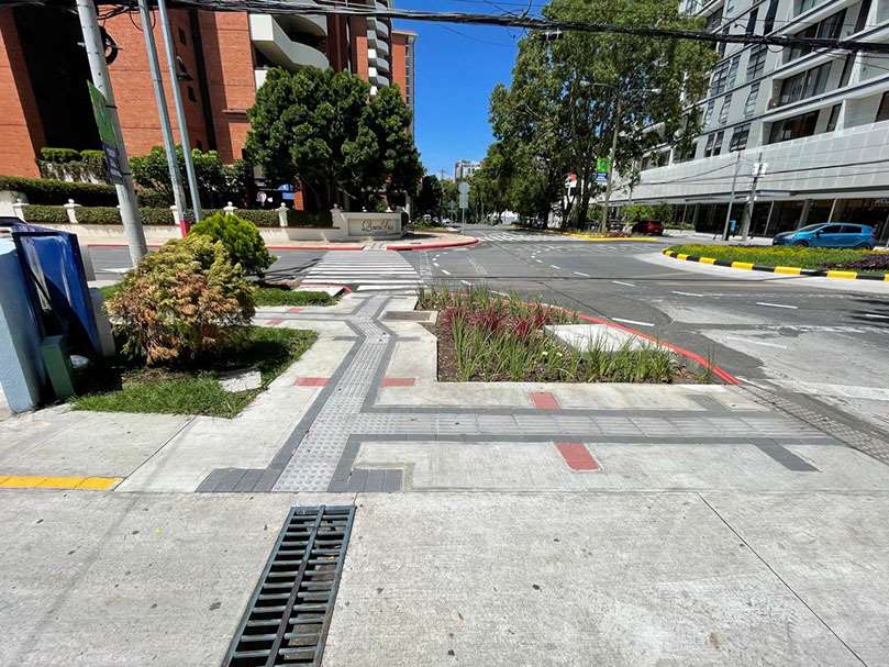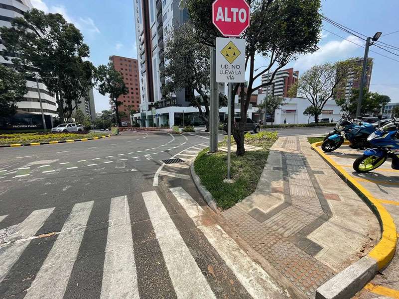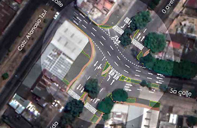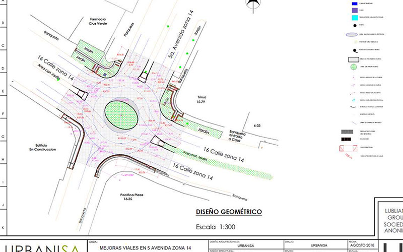 Topografía, estudio de suelos, diseño, planificación y ejecución del proyecto. Construcción de glorieta para distribución vial y remozamiento de aceras. Señalización vertical y horizontal, ampliación de radio de giro viales. señalización vertical y horizontal de ciclovía Trabajos en horario diurno y nocturno