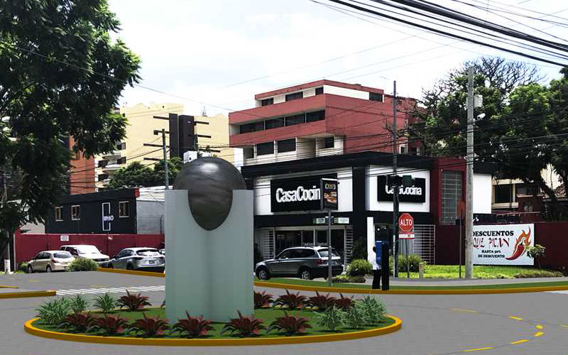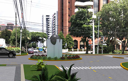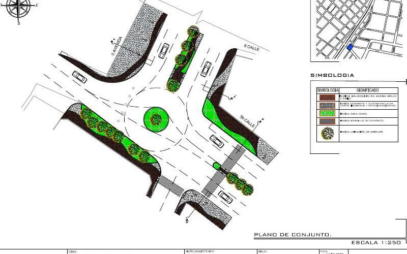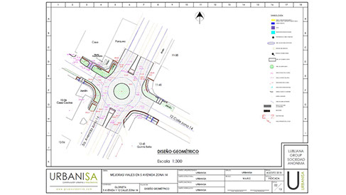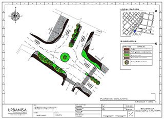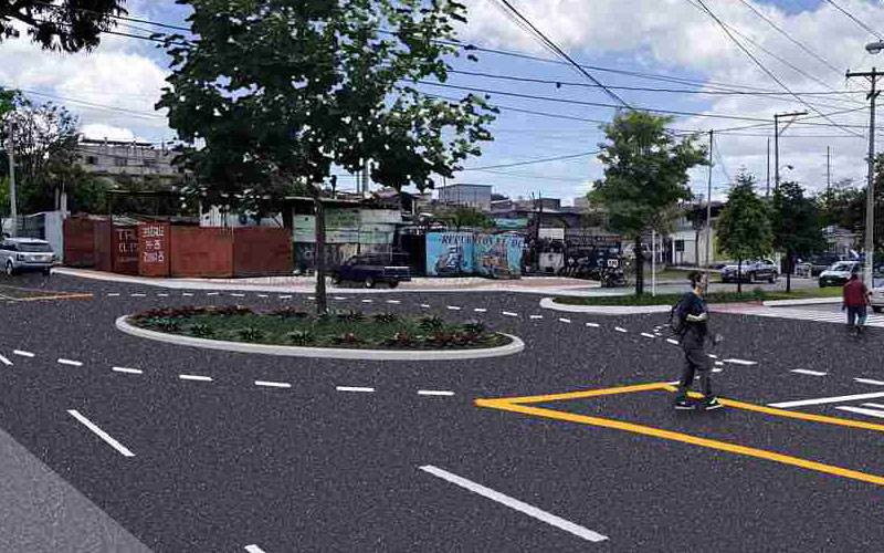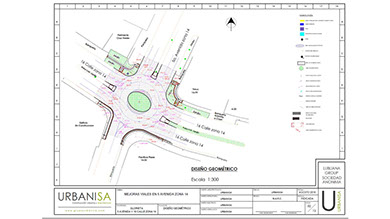 Topografía, estudio de suelos, diseño, planificación y ejecución del proyecto. Construcción de glorieta para distribución vial y remozamiento de aceras. Señalización horizontal con pintura de trafico y señalización vertical según especificaciones municipales. Trabajos en horario diurno y nocturno